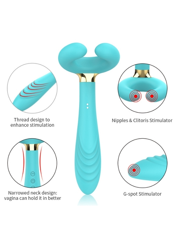Çiftler için Klitoris Vibratörü – 3 Motorlu Çok Fonksiyonlu Konsolador ve Penis Masajörü (Mavi)