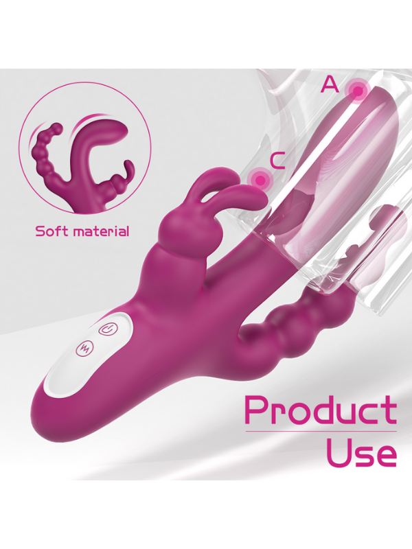Yeni nesil 3’ü 1 arada tavşan vibratör, keşfetmeye açık olanlar için özel olarak tasarlandı. Aynı anda vajina, klitoris ve anal bölgeleri uyaran bu çok fonksiyonlu seks oyuncağı, sınırları zorlayan yoğun bir zevk deneyimi sunar.