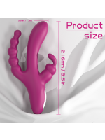 İçerisinde yer alan iki güçlü titreşim motoru, hem ana gövdede hem de klitoral uyarım için tasarlanmış küçük uzantıda çalışarak çoklu bölgelere aynı anda etki eder. Esnek yapısı sayesinde vücut anatomisine mükemmel uyum sağlar ve her hassas noktaya nazikçe temas eder. Üçüncü uç ise anal uyarım için özel olarak konumlandırılmıştır ve daha derin hisler yaratmak için idealdir.